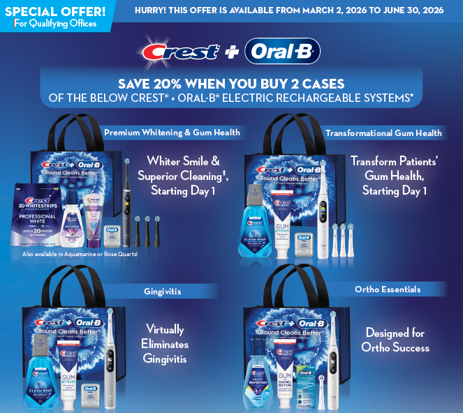 SAVE 20% WHEN YOU BUY 2 CASES OF CREST + ORAL-B ELECTRIC RECHARGEABLE SYSTEMS*